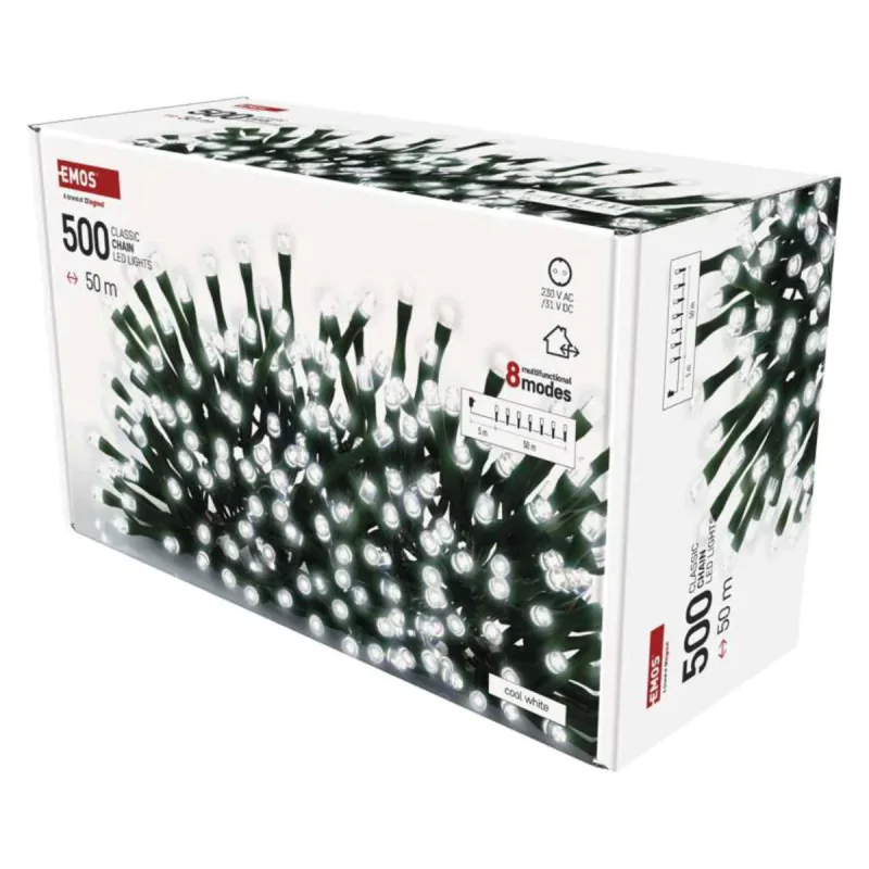 Lampki choinkowe LED 50m EMOS to doskonały wybór dla osób, które chcą stworzyć efektowną dekorację świąteczną zarówno w domu, jak i na zewnątrz. Jasna, zimna barwa światła nadaje elegancki, zimowy charakter każdej przestrzeni, idealnie podkreślając wygląd dużych choinek, elewacji czy ogrodowych aranżacji. Dzięki solidnej konstrukcji oświetlenie świetnie sprawdza się w różnych warunkach, umożliwiając swobodne dekorowanie wnętrz i terenów wokół domu.