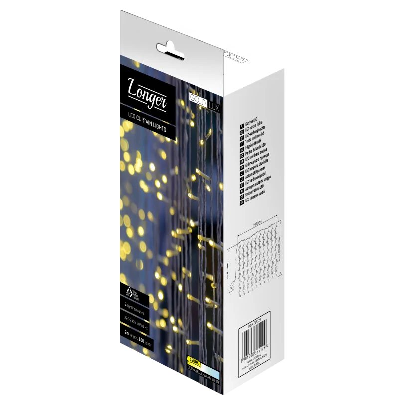 Kurtyna LED Longer marki Polux pięknie oświetli wybrane wnętrze ciepłym światłem 1900K o mocy 9W, stanie się również piękną ozdobą wybranego wnętrza. Zawieszona na oknie stworzy nam magiczny klimat. Włącznik zintegrowany jest ze sterownikiem, a długość przewodu od zasilacza do pierwszego punktu światła to 1,5m. Kurtyna LED posiada 8 funkcji, wyposażona również została w funkcję timera.