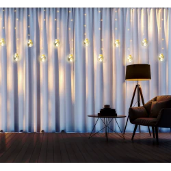 Kurtyna LED została zaprojektowana z myślą o dekoracji domowych przestrzeni, oferując estetyczne i jednocześnie praktyczne rozwiązanie oświetleniowe. Jej uniwersalny design sprawia, że pasuje do różnych stylów aranżacyjnych, a ciepłe światło dodatkowo podkreśla przyjemną atmosferę wnętrza. To dekoracja, która zachwyca swoją prostotą, funkcjonalnością i efektownym światłem.