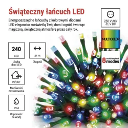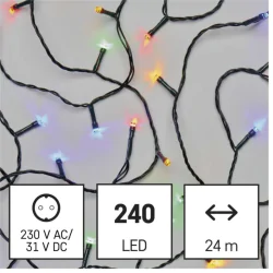Lampki choinkowe EMOS Classic to idealny sposób na stworzenie ciepłej, świątecznej atmosfery zarówno w domu, jak i na zewnątrz. Ich przyjemne kolorowe światło wprowadza przytulny nastrój, a zielony przewód dyskretnie wtapia się w gałęzie choinki, tworząc naturalny i estetyczny efekt. Oświetlenie oferuje kilka trybów świecenia, dzięki czemu można dopasować wygląd dekoracji do okazji — od delikatnego migotania po stałe, spokojne światło.