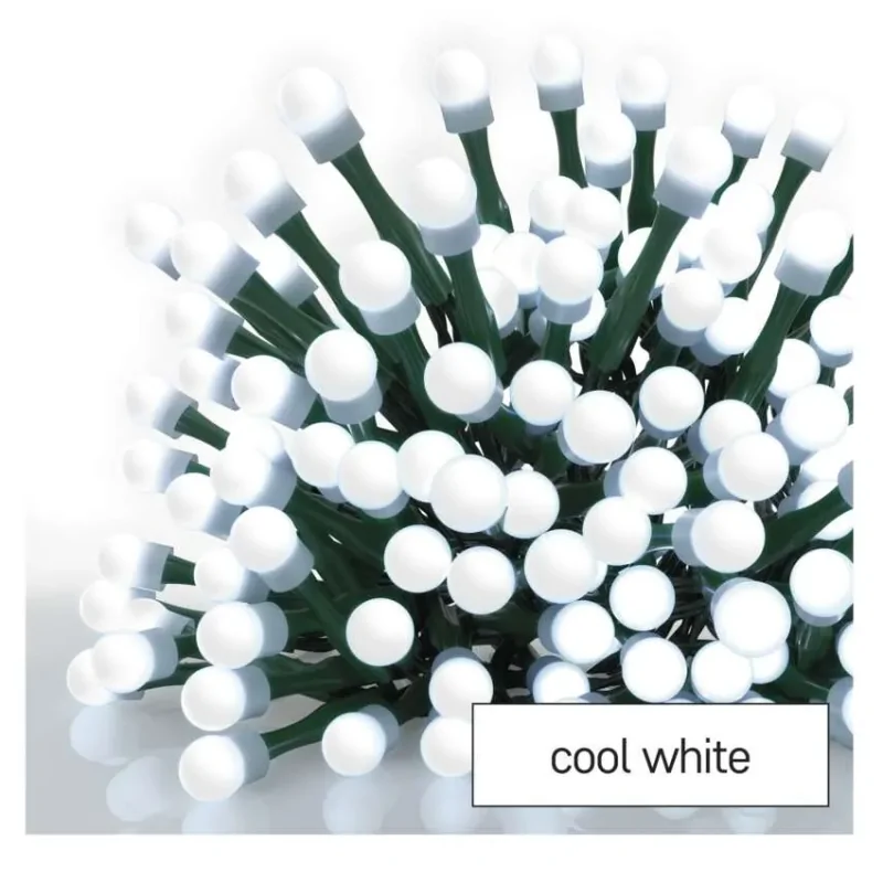 Dekoracyjne lampki świąteczne D5AC02 marki EMOS, wyróżniają się niskim poborem prądu i długą żywotnością. Wbudowana funkcja timera, sprawia, że łańcuch będzie świecił w regularnych odstępach czasu, zapewni to bezpieczeństwo w użytkowaniu. Stopień ochronny IP44, umożliwia zastosowanie światełek zarówno wewnątrz pomieszczeń, jak i na zewnątrz. Łańcuch dekoracyjny, mierzy 8 metrów długości i posiada 80 sztuk wbudowanych diod LED. Jest to energooszczędne oświetlenie, które pobiera zaledwie moc 3,6W. Światełka na choinkę świecą klimatyczną zimną barwą światła. Lampki choinkowe przystosowane są do tradycyjnego napięcia 230V. Polecamy zapoznać się z całą świąteczną kolekcją marki EMOS.