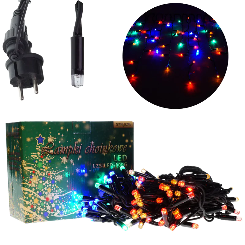 Lampki choinkowe LED kolorowe z dodatkowym gniazdem Na Zewnątrz