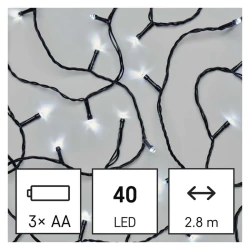 Lampki choinkowe na baterie LED Światełka bezprzewodowe 40 LED 2,8m 3xAA zimna biel IP44 timer D4FC01 EMOS