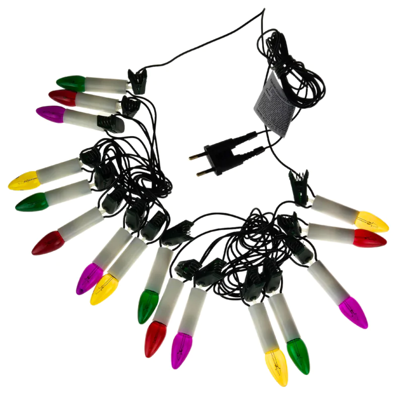 - Kolory żarówek w zestawie: Czerwona, zielona, fioletowa, żółta