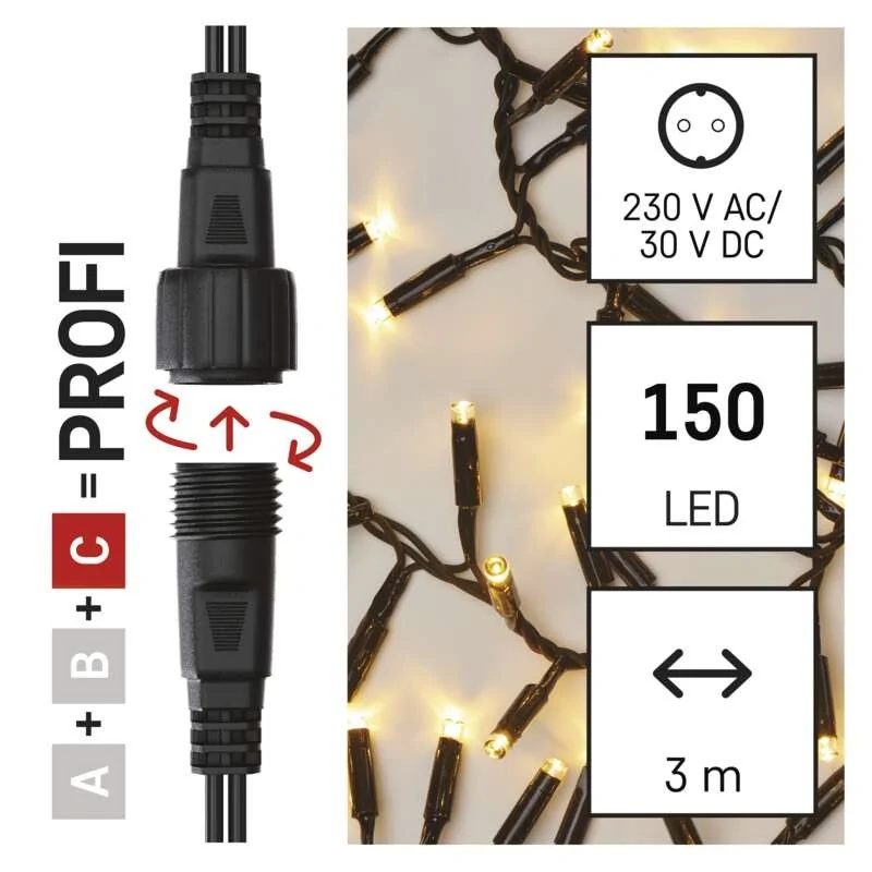 Światełka choinkowe D2BW01, w kształcie tzw. jeżyka, emitują przyjemną i klimatyczną ciepłą barwą światła. Wyposażone są w system łączenia PROFI, który umożliwia przedłużenie łańcucha, dlatego zasilacz nie jest dołączony do zestawu. Dekoracja świąteczna marki EMOS mierzy 3m długości i posiada 150szt świecących diod LED, które rozstawione są co 2cm. Lampki dedykowane są do użytku w pomieszczeniu jak i na zewnątrz. Żywotność światełek to około 10 000 godzin. Produkt objęty jest trzyletnią gwarancją producenta. Polecamy zapoznać się z całą serią świąteczną marki EMOS.