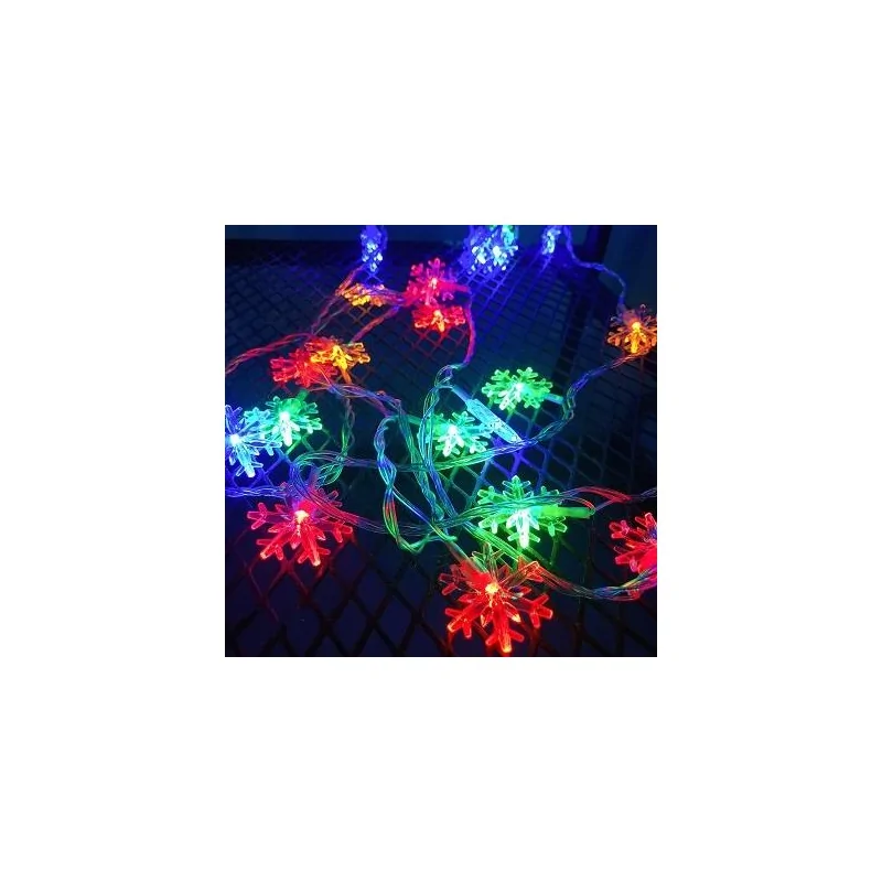 Świąteczny łańcuch gwiazdki LED marki LVT to wyjątkowa ozdoba nie tylko w naszym wnętrzu, ale również na zewnątrz stworzy nam piękną, świąteczną atmosferę. Posiada podwyższony stopień ochronności IP45. Girlanda została wykonana z dobrej jakości tworzywa sztucznego, a jego długość wynosi 2m. Łańcuch LED świeci nam kolorowo - RGB i zasilany jest dwoma bateriami AA. Pamiętajmy, że baterie nie znajdują się w komplecie. Czas świecenia na jednym komplecie, w zależności od marki baterii, to około 20-30 godz.