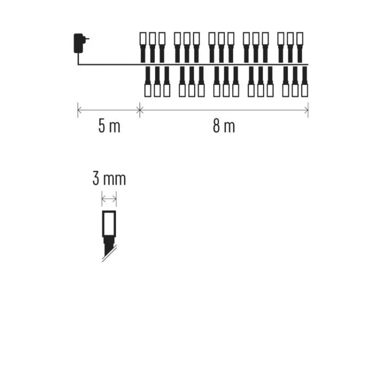 Lampki choinkowe D4BW02 CLASSIC marki EMOS, to oczywisty wybór do stworzenia przytulnej atmosfery przy różnych świątecznych okazjach. Poza tradycyjnym wykorzystaniem do dekoracji świątecznej choinki, wspaniale prezentują się również na ramie drzwi czy lustra. Można je owinąć wokół poręczy, belki, pnia drzewa itp. Światła na tego typu łańcuchu są gęściej rozmieszczone, świecą intensywnie i tworzą niemal luksusowe wrażenie. Funkcja czasowa, po aktywacji której łańcuch powtarzalnie świeci przez 6 godzin, a następnie wyłącza się na 18 godzin. Światełka dekoracyjne są odporne na wilgoć dzięki ochronie IP44 i nadają się do wszystkich dekoracji wewnętrznych i zewnętrznych. Łańcuch mierzy 8 metrów długości i posiad 400 sztuk wbudowanych diod LED, które świecą przyjemną ciepłą barwą światła. Jest to energooszczędne oświetlenie świąteczne o mocy 3,6W. W połączeniu z klasycznymi łańcuchami o standardowej gęstości świateł można uzyskać bardzo ciekawe efekty podczas przygotowywania dekoracji świątecznych.
