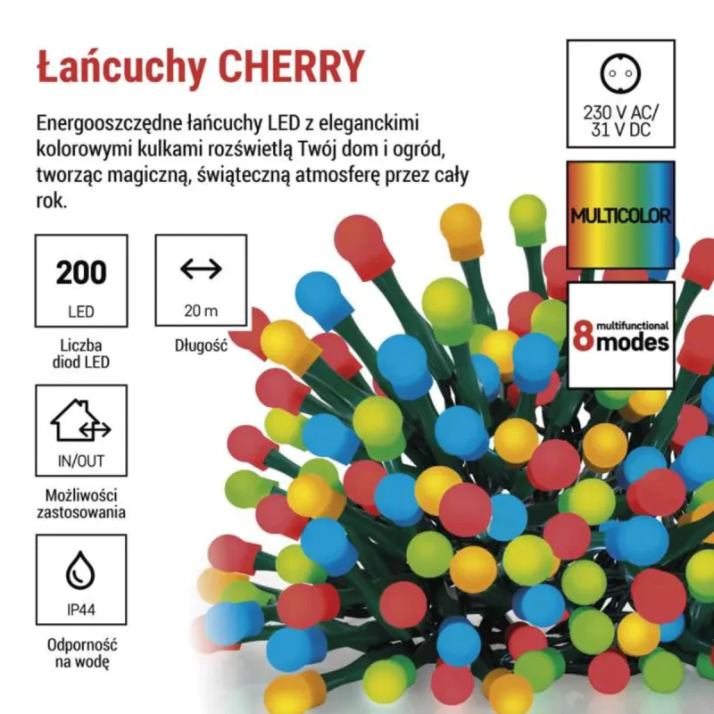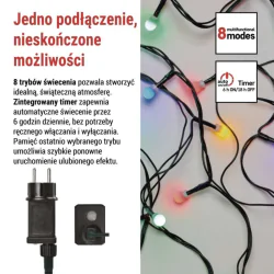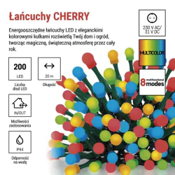światełka choinkowe LED 20m Lampki kolorowe kulki na zewnątrz i do wewnątrz 200LED 8 programów D5AC07 EMOS