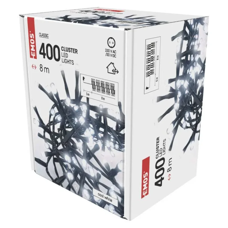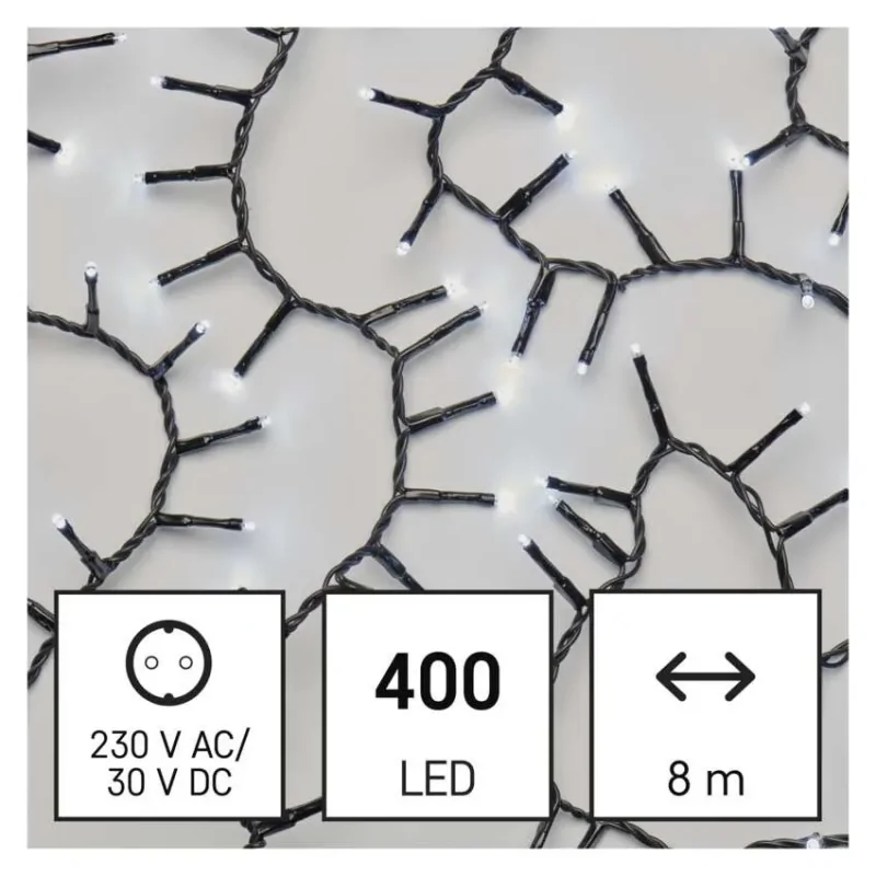 Światełka jeżyk na choinkę Classic Cluster 400LED 8m zimna IP44 timer D4BC02 EMOS