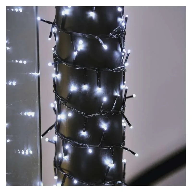 Lampki choinkowe D4BC02 CLASSIC marki EMOS, to oczywisty wybór do stworzenia przytulnej atmosfery przy różnych świątecznych okazjach. Poza tradycyjnym wykorzystaniem do dekoracji świątecznej choinki, wspaniale prezentują się również na ramie drzwi czy lustra. Można je owinąć wokół poręczy, belki, pnia drzewa itp. Światła na tego typu łańcuchu są gęściej rozmieszczone, świecą intensywnie i tworzą niemal luksusowe wrażenie. Funkcja czasowa, po aktywacji której łańcuch powtarzalnie świeci przez 6 godzin, a następnie wyłącza się na 18 godzin. Światełka dekoracyjne są odporne na wilgoć dzięki ochronie IP44 i nadają się do wszystkich dekoracji wewnętrznych i zewnętrznych. Łańcuch mierzy 8 metrów długości i posiad 400 sztuk wbudowanych diod LED, które świecą klimatyczną zimną barwą światła. Jest to energooszczędne oświetlenie świąteczne o mocy 3,6W. Dodatkowo światełka posiadają 8 trybów świecenia. W połączeniu z klasycznymi łańcuchami o standardowej gęstości świateł można uzyskać bardzo ciekawe efekty podczas przygotowywania dekoracji świątecznych.