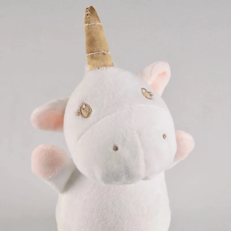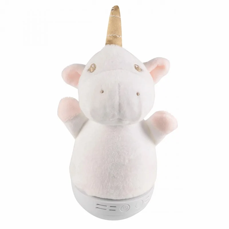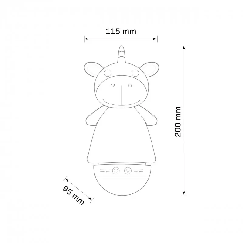 Lampka nocna w postaci pluszowego jednorożca marki POLUX-GOLDLUX to urocze oświetlenie do pokoju dziecięcego- idealne na prezent z okazji Dnia Dziecka. Biała lampka w postaci jednorożca to tak zwana lampka ''wańka-wstańka'', ponieważ po położeniu wraca ona z powrotem do pozycji stojącej. Lampka nocna posiada 10 spokojnych melodii, jak również świeci na wybrany kolor lub w trybie płynnej zmiany kolorów. Biała pluszową osłonę lampki można bez problemu ściągać i prać w letniej wodzie (max.30 stopni) przy użyciu np. proszku do prania. Biała lampka dziecięca zasilana jest bateryjnie (brak baterii w zestawie) i wyposażona została w dotykowy włącznik. Lampka nocna z kolorowym światłem RGB automatycznie wyłącza się po 30 minutach.