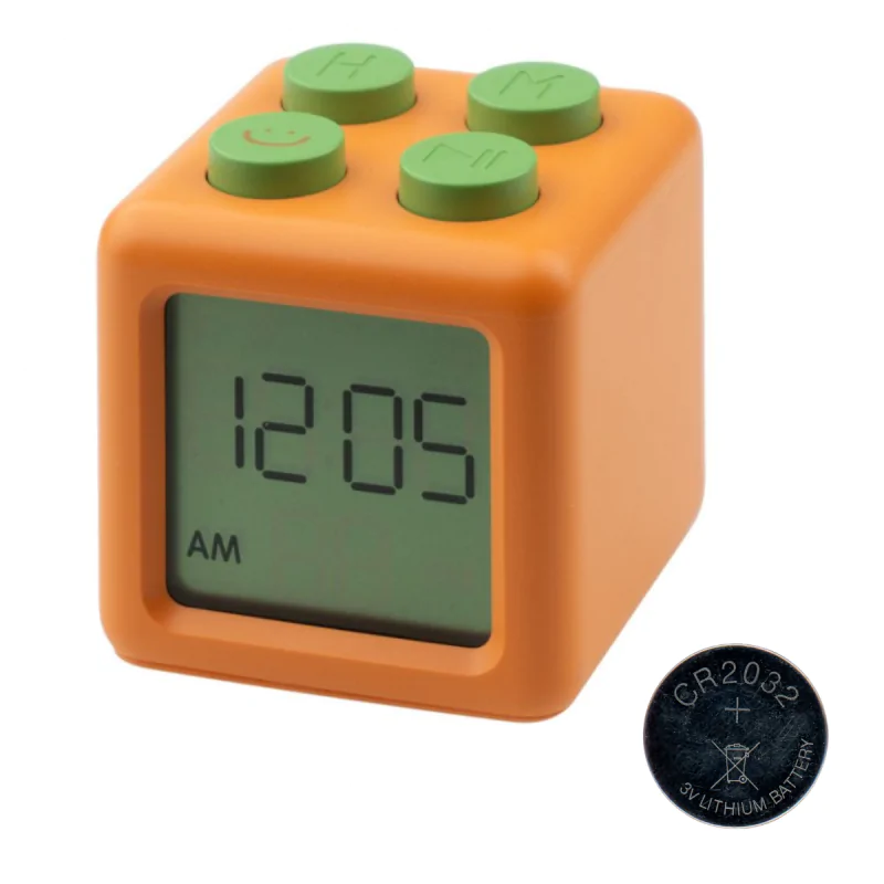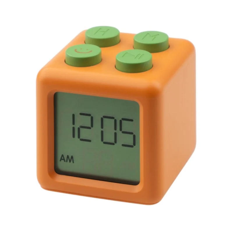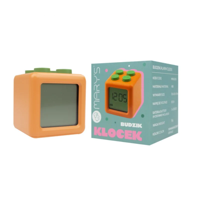 Budzik dziecięcy kostka pomarańczowa Zegar klocek lego z wyświetlaczem INTERBLUE