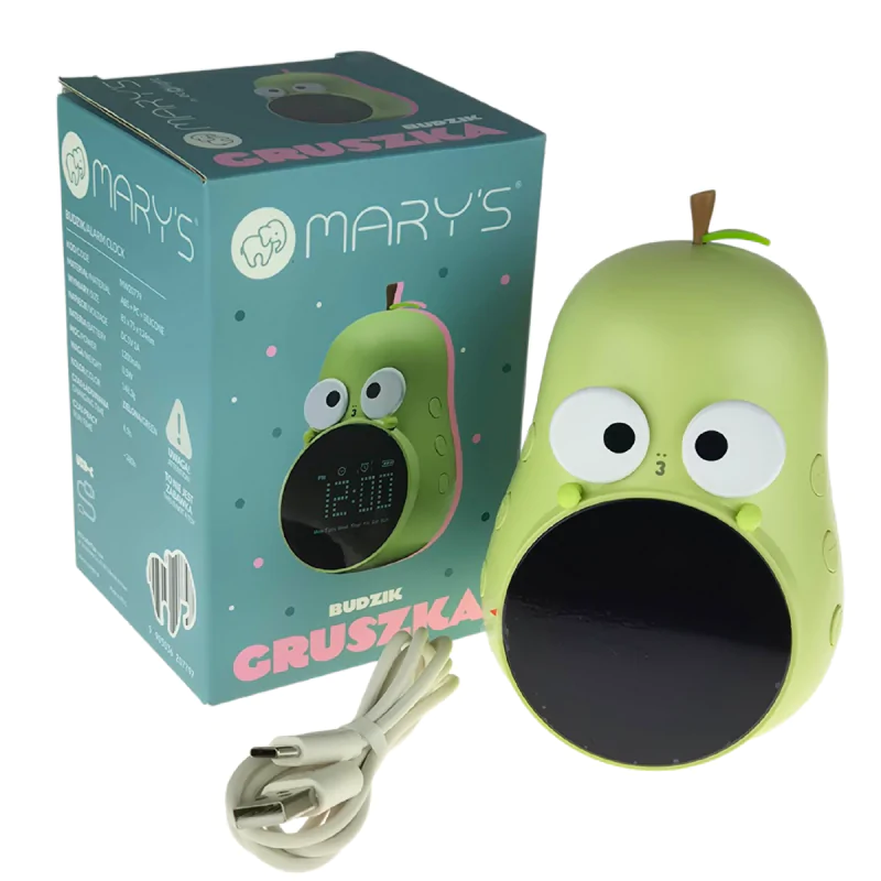 Budzik LED MARY'S to doskonałe rozwiązanie dla dzieci, które łączy funkcjonalność z estetyką. Jego zabawny kształt gruszki i żywy, zielony kolor sprawiają, że stanie się on nie tylko pomocnikiem podczas codziennych pobudek, ale również ozdobą każdego dziecięcego pokoju. Dzięki wytrzymałej konstrukcji z materiałów ABS i PC, budzik jest odporny na przypadkowe upadki czy uderzenia, zapewniając długotrwałe i bezpieczne użytkowanie przez najmłodszych.