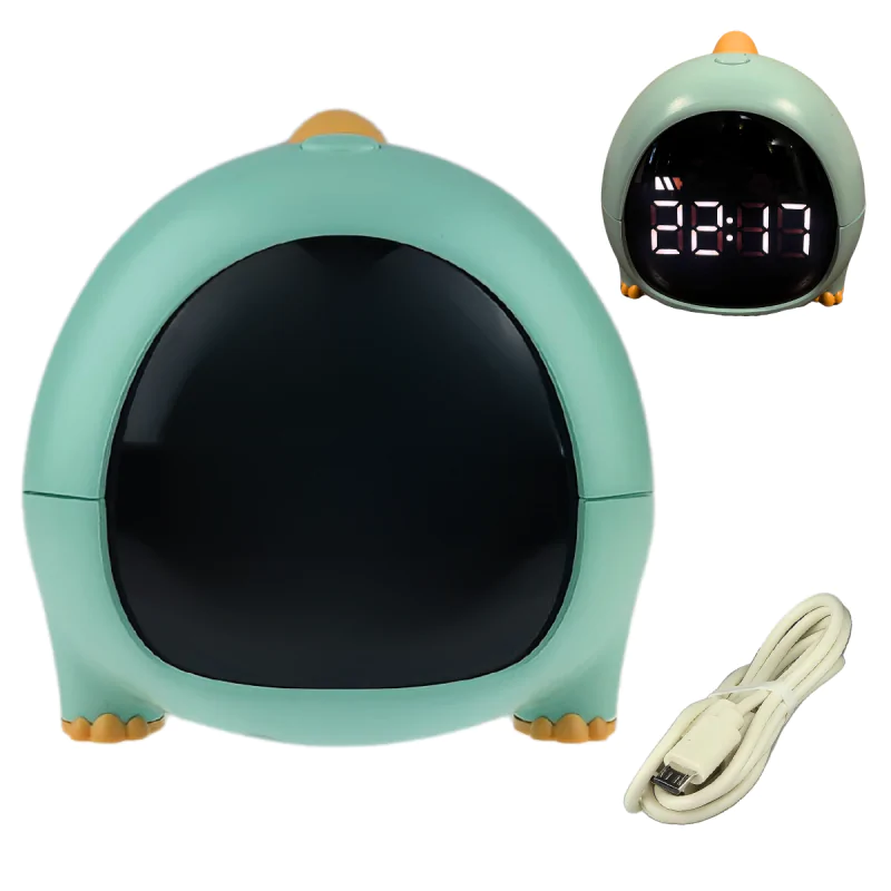 Dzięki niewielkim wymiarom, budzik z wyświetlaczem doskonale pasuje na każde biurko lub szafkę nocną. Jego kompaktowy design sprawia, że nie zajmuje wiele miejsca, a jednocześnie jest dobrze widoczny i czytelny. Wyświetlacz jest odpowiednio podświetlony, dzięki czemu łatwo odczytać godzinę nawet w nocy. To praktyczne rozwiązanie dla rodziców, którzy chcą wprowadzić do pokoju dziecięcego funkcjonalne i stylowe dodatki, które nie przytłaczają przestrzeni.