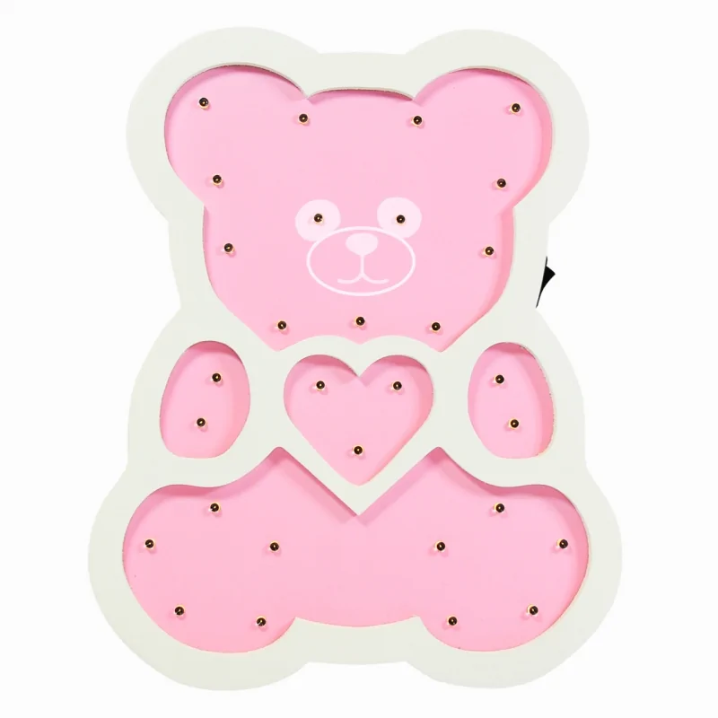 Lampa drewniana różowy Miś led POLUX
