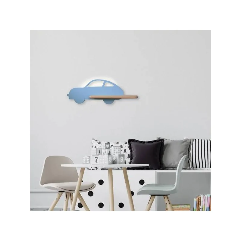 Lampa ścienna CAR marki Candellux to nietuzinkowe rozwiązanie oświetleniowe, które idealnie nada się do pokoju dziecięcego, jako dodatkowe oświetlenie np. nad łóżeczkiem. Niestandardowym rozwiązaniem jest również wbudowana półka. Wykonana została z drewna, plyty MDF oraz stali, w kolorze niebieskim. Wbudowany LED to energooszczędne źródło światła, które emituje neutralną barwą światła na poziomie 250lm oraz pobiera zaledwie 5W mocy. Kinkiet w kształcie auta to świetny gadźet do pokoju dziecka. Produkt objęty jest gwarancją producenta. Model posiada wtyczkę z przewodem i wlącznikiem.