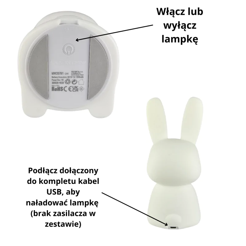 Lampka nocna dla dzieci zajączek ze zmienną barwą światła Prezent INTERBLUE