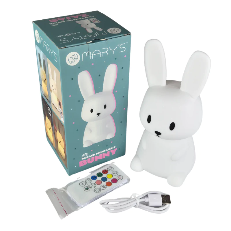 Lampka nocna na pilota MARY'S w postaci zajączka wprowadzi do pokoju Twojego dziecka odrobinę magii. Jej uroczy design doskonale sprawdzi się jako element dekoracyjny, tworząc przytulną atmosferę w każdym wnętrzu. Dzięki subtelnemu, miękkiemu światłu, lampka pomaga dzieciom czuć się bezpiecznie i spokojnie zasypiać, a jej pastelowe kolory wpasują się zarówno do pokoju niemowlęcia, jak i starszego dziecka.