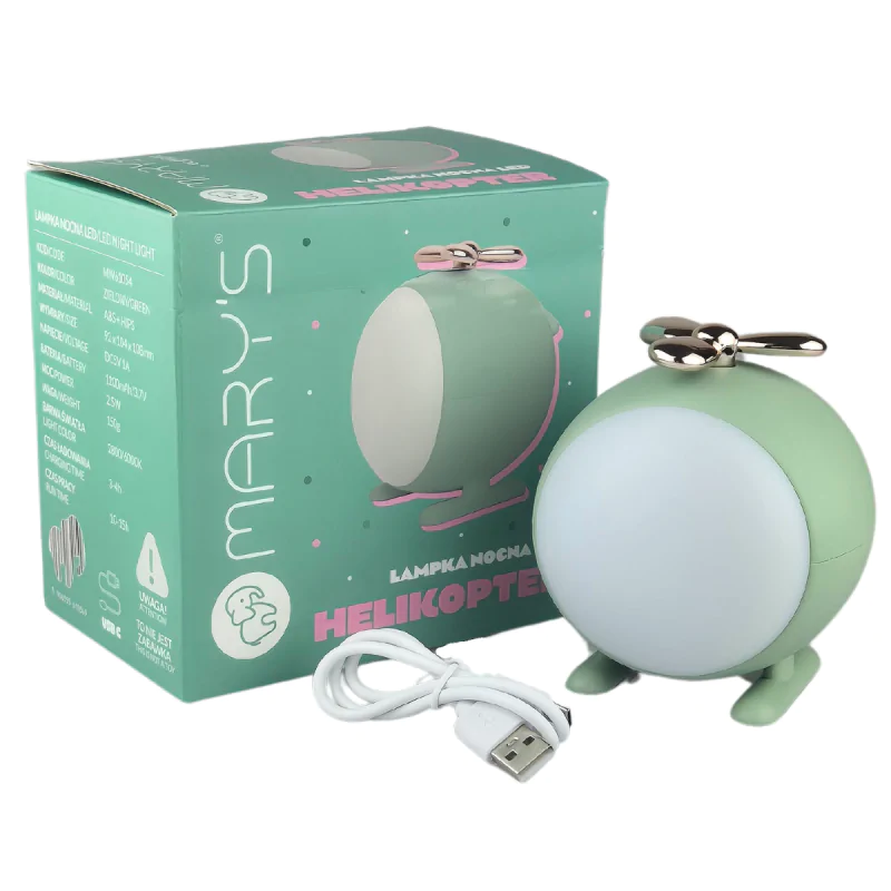 - Interaktywne sterowanie śmigłem: Zmiana ustawień lampki przez kręcenie śmigiełkiem zapewnia zabawę i prostotę użytkowania dla najmłodszych.