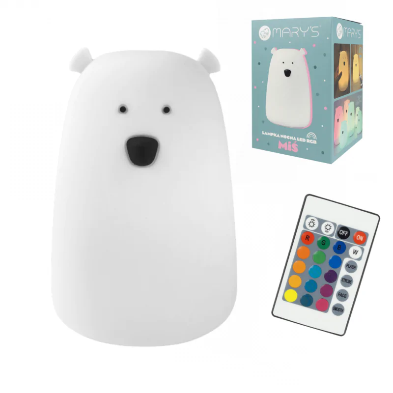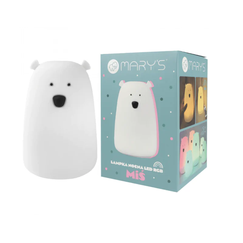 Lampka nocna duży biały miś na baterie dotykowa kolorowe światło INTERBLUE