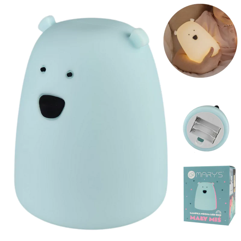 Lampka nocna dziecięca na baterie niebieski miś Prezent dla niemowlaka INTERBLUE