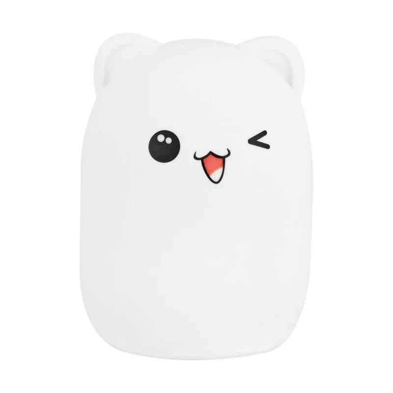 Urocza lampka nocna LED to doskonały dodatek do pokoju dziecięcego, sypialni czy salonu. Jej ciepłe, białe światło o barwie 3000K tworzy relaksującą atmosferę, idealną do wieczornego wyciszenia i spokojnego snu. Delikatne oświetlenie zapewnia komfortową widoczność w nocy, nie rażąc przy tym w oczy. Lampka posiada także funkcję kolorowego światla RGB- zmiany kolorów odbywają się przez deliatne uderzenie konstrukcji lampki.. Model posiada także opcje opoźnienia wyłączenia - lampka może wyłączyć się sama po 30 minutach, np. podczas zasypiania dziecka.
