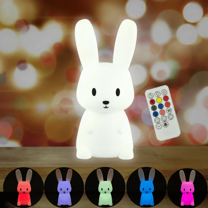 Lampka nocna LED dla dzieci biały królik na pilota INTERBLUE