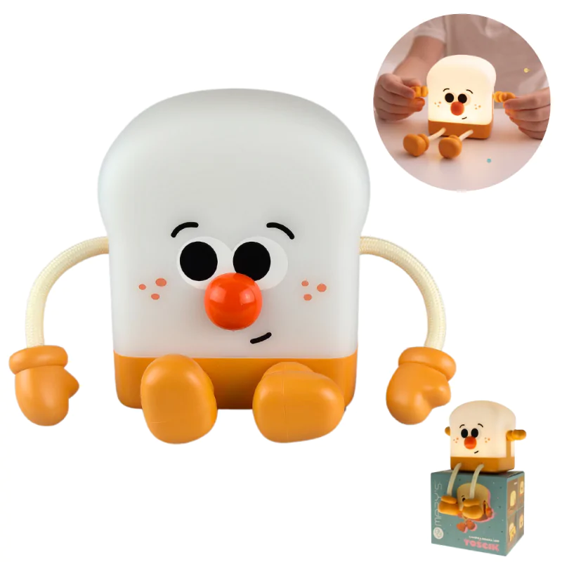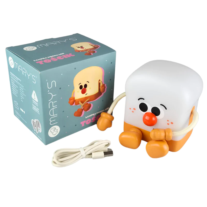 Dzięki unikalnemu kształtowi tosta, lampka nocna LED Tościk nie tylko oświetla, ale również rozwesela pokój, wprowadzając element zabawy i ciepła. Jest to świetny wybór dla rodziców, którzy chcą dodać wnętrzu charakteru i sprawić, by dziecięcy pokój stał się jeszcze bardziej przytulny i przyjazny. To doskonały towarzysz wieczornych opowieści przed snem, a dzięki dotykowej regulacji intensywności światła pozwala dostosować jasność w zależności od potrzeb – od subtelnego półmroku po jaśniejsze oświetlenie idealne do czytania bajek.