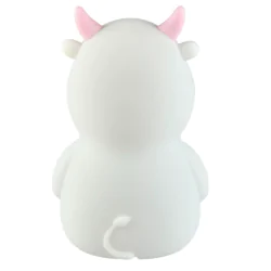- Uroczy, dziecięcy design: Lampka w kształcie krówki z różowymi elementami, która wprowadza bajkowy nastrój do pokoju.