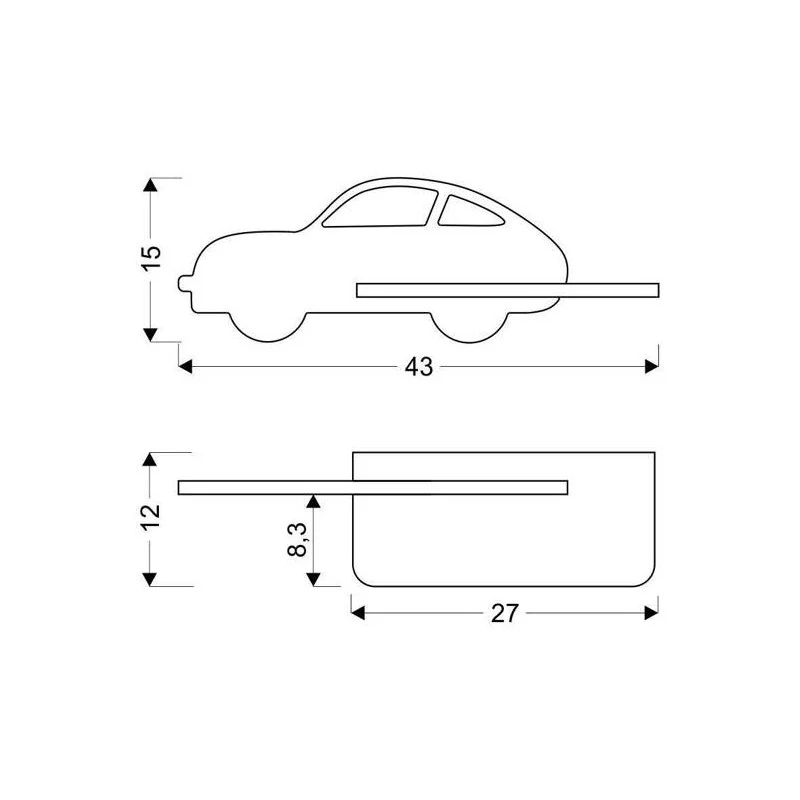 Lampa ścienna CAR marki Candellux to nietuzinkowe rozwiązanie oświetleniowe, które idealnie nada się do pokoju dziecięcego, jako dodatkowe oświetlenie np. nad łóżeczkiem. Lampka ścienna samochodzik posiada wbudowaną półkę na drobiazgi. Wykonana została z drewna, plyty MDF oraz stali. Wbudowany LED to energooszczędne źródło światła, które świeci neutralną barwą światła na poziomie 250lm oraz pobiera zaledwie 5W mocy. Czarny kinkiet w kształcie auta to świetny gadżet do pokoju dziecka interesującego się motoryzacją. Produkt objęty jest gwarancją producenta. Produkt posiada czarną wtyczkę z przewodem i wlącznikiem. W serii KIDS dostępne sa także inne ciekawe wzory i kolory oświetlenia do pokoju dziecka.