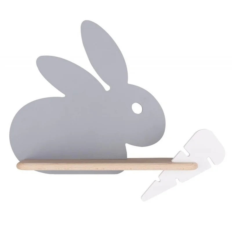 Nowoczesna lampa ścienna RABBIT marki Candellux to unikatowe oświetlenie, które dedykowane jest do pokoi dziecięcych, ale z pewnością spodoba się również miłośnikom faunistycznych wzorów. Niestandardowa konstrukcja w kształcie szarego królika i białej marchewki posiada wbudowany LED oraz funkcjonalną półkę. Wykonana została z drewna, MDF oraz stali w kolorystyce szaro-białej. Jest to energooszczędne oświetlenie LED, które pobiera moc 5W i emituje neutralną barwą światła na poziomie 250 lm. Kinkiet posiada wymiary takie jak: szerokość - 37cm oraz wysokość - 31cm. Produkt objęty jest gwarancja producenta. Lampka moze być świetnym prezentem urodzinowym, świątecznym czy upominikiem baby shower.