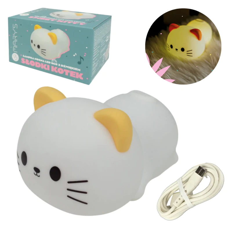 Lampka w kształcie kotka z dźwiękiem na prezent do usypiania USB INTERBLUE