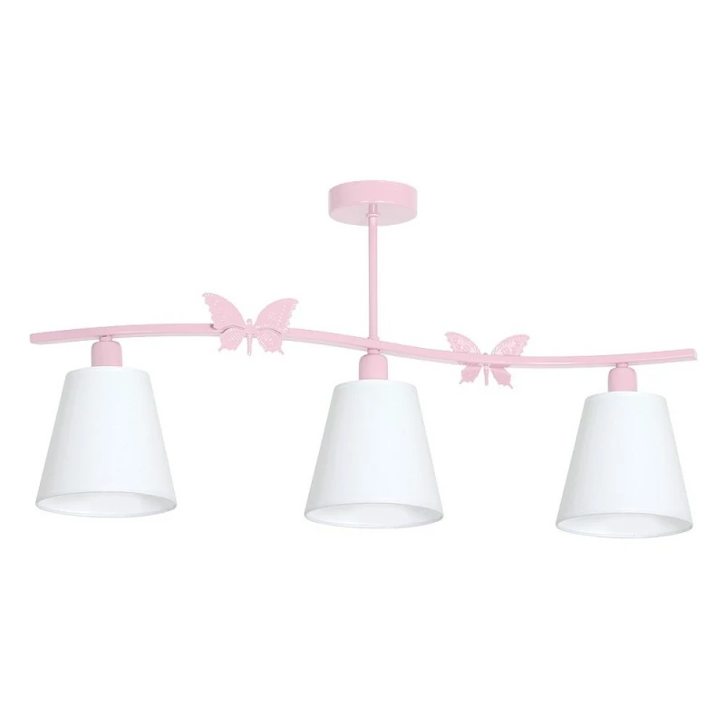 Oprawa sufitowa potrójna biało-różowa z motylami ALICE PINK EKO-LIGHT