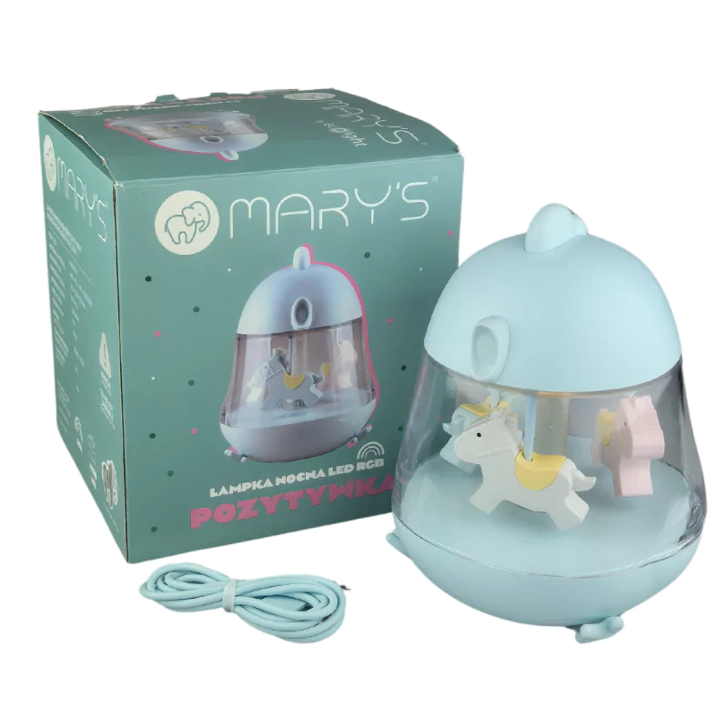 Pozytywka Dla Niemowlaka z kolekcji MARY'S to wyjątkowy produkt, który łączy w sobie funkcję lampki nocnej, pozytywki oraz dekoracyjnej karuzeli. Stworzona z myślą o najmłodszych, wprowadza przyjemną atmosferę do pokoju dziecięcego, zapewniając maluchom poczucie bezpieczeństwa i spokoju. Lampka emituje delikatne, ciepłe białe światło (3000K), idealne do zasypiania, oraz kolorowe oświetlenie RGB, które można dostosować do nastroju dziecka. Dzięki temu produkt sprawdza się zarówno jako lampka nocna, jak i atrakcyjny element dekoracyjny.
