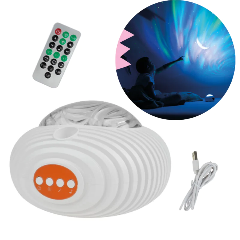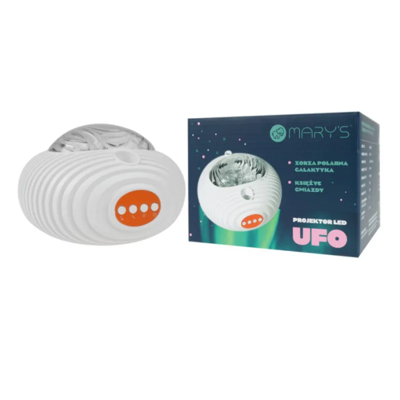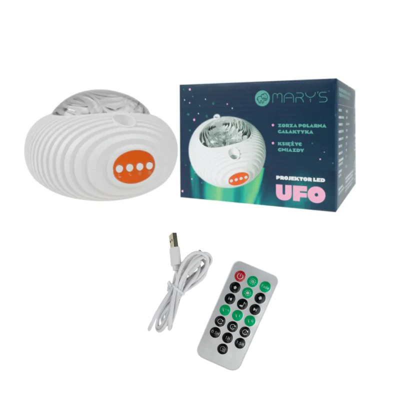 PROJEKTOR UFO GALAKTYKA RGBW to nowoczesne urządzenie oświetleniowe, które wprowadza wyjątkową atmosferę do każdego pomieszczenia. Dzięki zaawansowanej technologii projekcji kosmicznej RGBW, urządzenie emituje realistyczne efekty galaktyczne w odcieniach niebieskiego, zielonego, czerwonego i białego z podkładem muzycznym. To doskonałe rozwiązanie dla osób pragnących stworzyć relaksacyjną i magiczną przestrzeń zarówno w sypialni, salonie, jak i pokoju dziecięcym.