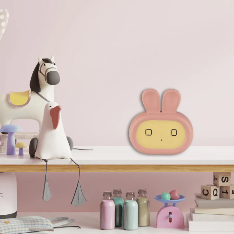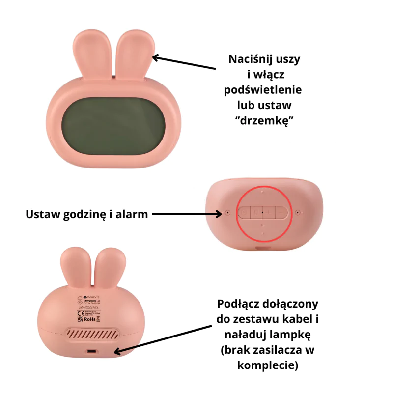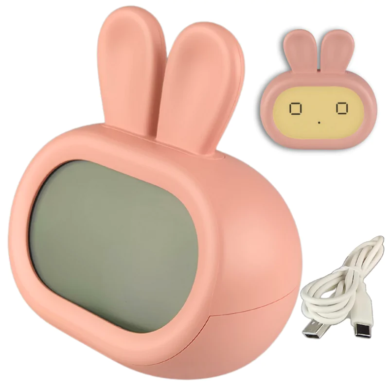 Zegar z budzikiem różowy króliczek z wyświetlaczem Prezent dla dziecka INTERBLUE