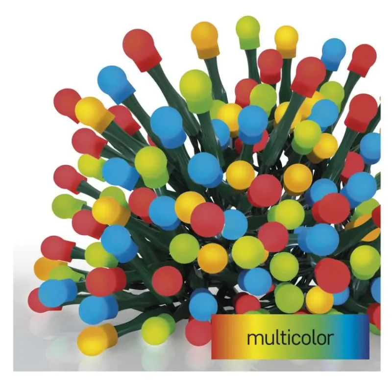 Światełka choinkowe D5AM05 marki EMOS, w formie multikolorowych kulek to energooszczędne oświetlenie dekoracyjne o długiej żywotności. Łańcuch świąteczny CHERRY z multifunkcją pozwala na wybór jednego z ośmiu zaprogramowanych trybów świecenia, które następnie rozjaśniają każdą przestrzeń i zachwycą zarówno dzieci, jak i dorosłych. W trybie podstawowym wszystkie światła świecą się stale, natomiast pozostałe siedem trybów to kombinacja różnych mignięć, wyłączeń i włączeń świateł. Lampki LED są ukryte w małych białych kulkach, które są dekoracyjne nawet wtedy, gdy łańcuch nie jest zaświecony. Kule CHERRY mogą służyć jako dekoracja w ciągu dnia, która rozświetli się po zmroku i stworzy odpowiednią atmosferę. Łańcuchy CHERRY to zatem dosłownie dwa w jednym. Łańcuchy CHERRY o wielofunkcyjności są odporne na wilgoć dzięki ochronie IP44 i nadają się do wszystkich dekoracji wewnętrznych i zewnętrznych. Lampki choinkowe mierzą 8 metrów długości i posiadają 80 sztuk wbudowanych diody LED. Jest to energooszczędne oświetlenie dekoracyjne o mocy 3,6W, świecące wyjątkową kolorową barwą światła, która rozświetli przestrzeń niezapomnianym klimatem. Łańcuch dostępny jest o różnych długościach i barwie świecenia.