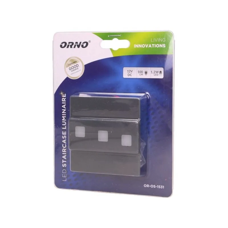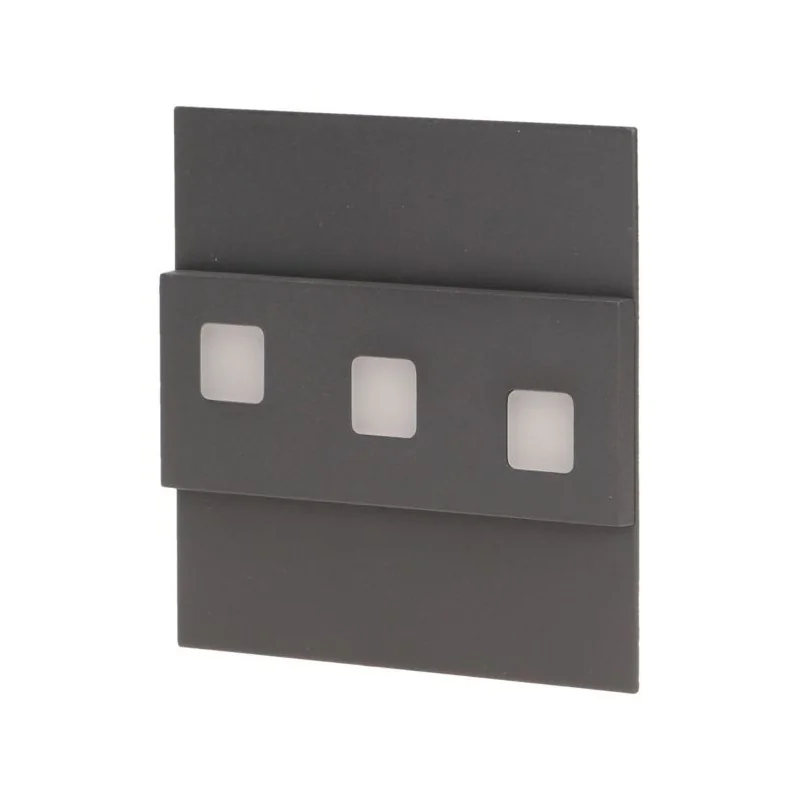 Grafitowe oświetlenie schodowe z linii LEPUS marki ORNO, w formie kwadratu, przystosowane jest do montażu natynkowego. Wysokość i szerokość lampy wynosi 7,5cm. Wbudowane światło LED charakteryzuje się długą żywotnością i energooszczędnością. Oprawa ścienna świeci delikatną ciepłą barwą światłą, równą temperaturze 3000K i pobiera moc zaledwie 1,2W. Lampa przeznaczona jest do dekoracyjnego oświetlenia pomieszczeń takich jak: klatki schodowe, korytarze, ściany, linie komunikacyjne itp. Dostępne kolory: satyna, mosiądz, biały, grafit, czarny. Materiał: stal szlachetna.
