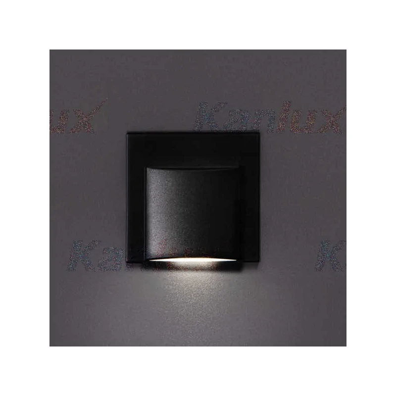 Oprawa schodowa led ERINUS marki KANLUX posiada czarną kwadratową obudowę, która dopasuje się do każdej aranżacji. Produkt wyposażony został w zintegrowane, niewymienne diody led, których szacowany czas żywotności to około 30000h oraz 15000 cykli włączeń i wyłączeń. Oprawa świeci w jedną stronę dziennym, neutralnym białym światłem o temperaturze barwowej 4000K i strumieniem świetlnym równym 15 lumenów. Lampa przyschodowa led działa z mocą zaledwie 0,8W i dostępna jest w różnych wersjach kolorystycznych.