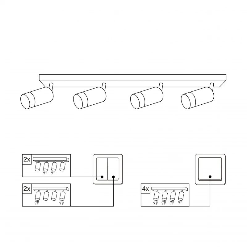Oprawa ścienno-sufitowa 4XGU10 ARRAS marki POLUX wyposażona została w 4 ruchome klosze, dzięki czemu możesz ustawić padanie światła w dowolny punkt. Brak źródła światła w zestawie pozwala na indywidualne dopasowanie mocy, barwy i natężenia światła żarówki z gwintem GU10 do własnych potrzeb, pod warunkiem, że nie będzie przekraczać 4x10W led. Oprawa potrójna ARRAS wykonana został głównie z wysokiej jakości aluminium, co gwarantuje długą żywotność produktu. Lampa dostępna jest również w biało-złotej wersji.