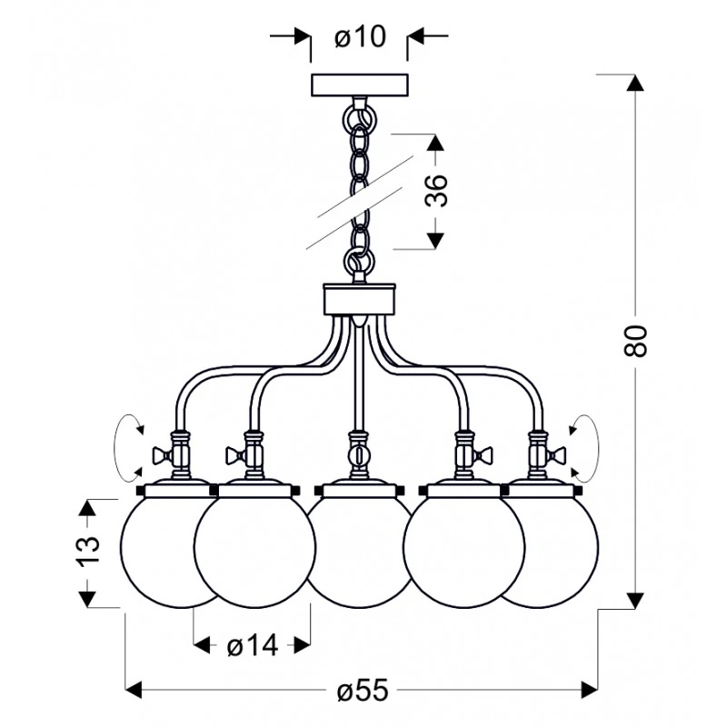 - Materiał: podstawa stalowa/łańcuch, klosz szklany