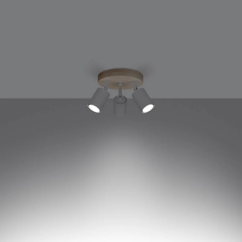 Biały plafon Verdo marki Sollux lighting to nowoczesne oświetlenie posiadające ruchome klosze, więc wiązkę światła skierujemy w miejsca, które będziemy chcieli oświetlić. Połączenie stali i drewna to wyjątkowe dopełnienie naszego wnętrza, cudowna jego ozdoba. Dzięki wymiennym źródłom światła o gwincie GU10 dobierzemy odpowiednią do naszych oczekiwań barwę światła oraz maksymalną moc 3x10W. Pamiętajmy, że żarówka nie znajduje się w zestawie. Oświetlenie sufitowe Verdo dostępne jest w dwóch klasycznych kolorach, z serii tej dostaniemy również kinkiet oraz plafony z 2,3 lub 4 źródłami światła. Plafon ten to polski produkt objęty 5-letnią gwarancją producenta.