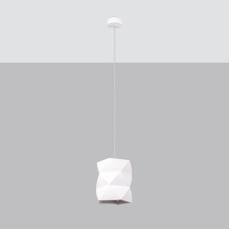 Ceramiczna lampa wisząca Gobi marki Sollux llighting to piękne, subtelne oświetlenie naszego salonu, przedpokoju czy jadalni. Oświetlenie sufitowe, a dokładniej klosz ozdobiony w geometryczne trójkąty w pięknym białym kolorze ozdobi niejedno wybrane wnętrze. Regulowane zawiesie pozwoli nam dobrać długość lampy, która dostępna jest w dwóch wersjach. Zawieszona w pojedynkę czy jako kilka punktów świetlnych stworzy nam wyjątkową dekorację. Dzięki wymiennemu źródłu światła o gwincie E27 dobierzemy odpowiednią do naszych oczekiwań barwę światła oraz maksymalna moc 15W. Pamiętajmy, że żarówka nie znajduje się w zestawie. Lampa wisząca została wykonana z najwyższej jakości ceramiki. Polski produkt objęty 5-letnią gwarancją.