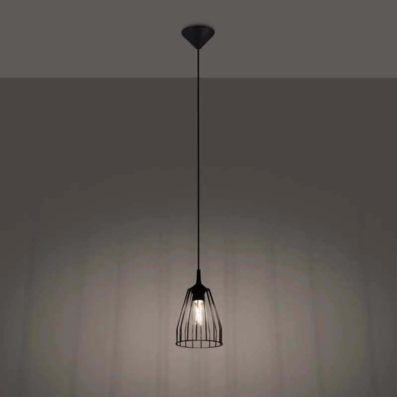 Czarna lampa wisząca Leyo marki Sollux lighting to piękna i delikatna forma naszego wewnętrznego oświetlenia. Oświetlenie sufitowe dostępne jest w trzech wersjach klosza, więc zawieszone w pojedynkę czy jako kilka punktów stanie się również cudowną ozdobą wybranego miejsca. Wymienne źródło światła o gwincie E27 sprawi, że dobierzemy do naszych oczkiwań barwę światła oraz maksymalną moc 15W. Pamiętajmy, ze żarówka nie znajduje się w komplecie. Lampa wisząca wykonana została z dobrej jakości stali, a utrzymanie jej w czystości jest niezwykle łatwe. Polski produkt objęty 5-letnią gwarancją.