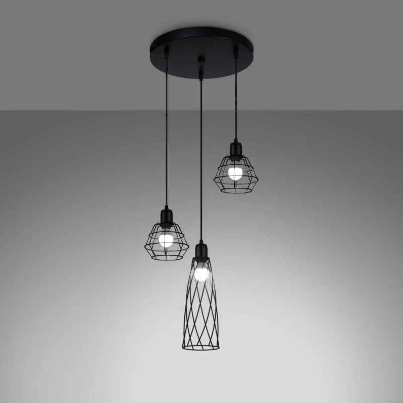 Czarna lampa wisząca Suba marki Sollux lighting to wyjątkowe oświetlenie w salonie, przedpokoju czy nad jadalnianym stołem. Oświetlenie sufitowe posiada urocze geometryczne klosze, a światło przez nie cudownie się rozproszy. Wymienne źródła światła o gwincie E27 sprawią, że dobierzemy odpowiednią do naszych oczekiwań barwę światła oraz maksymalną moc 15W. Pamiętajmy, że żarówki nie znajdują się w zestawie. Lampa sufitowa wykonana została z dobrej jakości stali. W kolekcji Suba dostępny jest również kinkiet oraz lampy wiszące z 1 bądź 4 punktami świetlnymi. Produkt polski objęty 5-letnią gwarancją producenta.
