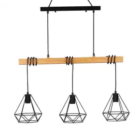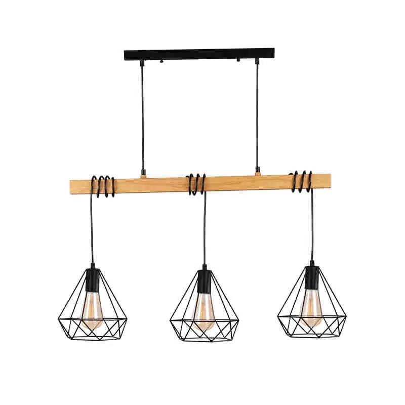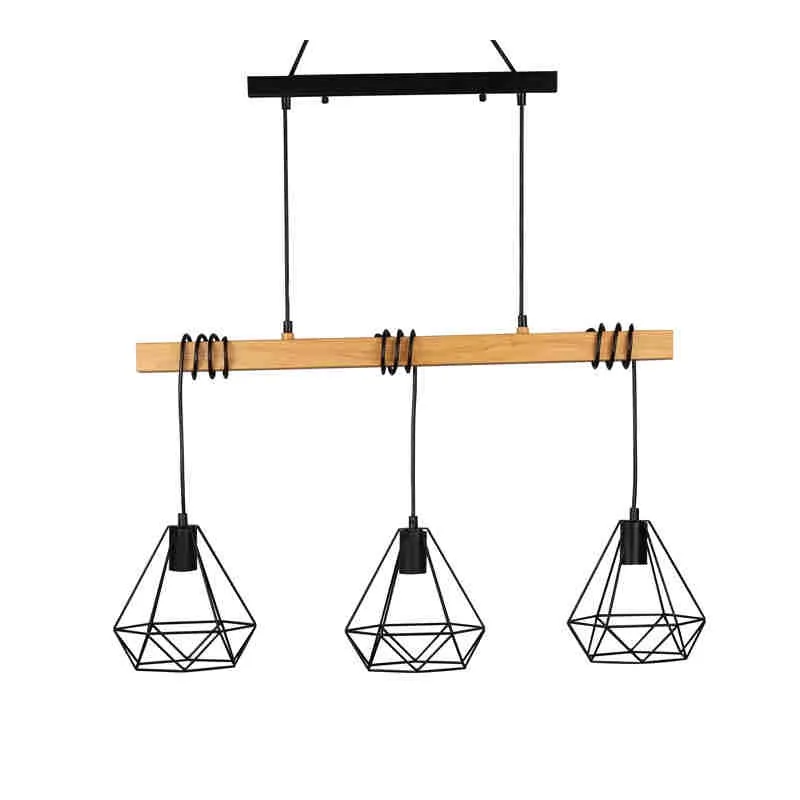 Druciana lampa 3 klosze z drewnianą wstawką 3xE27 .VIGO WOOD POLUX