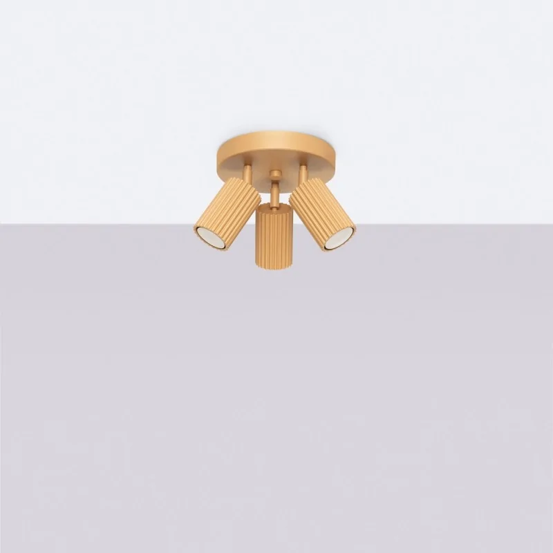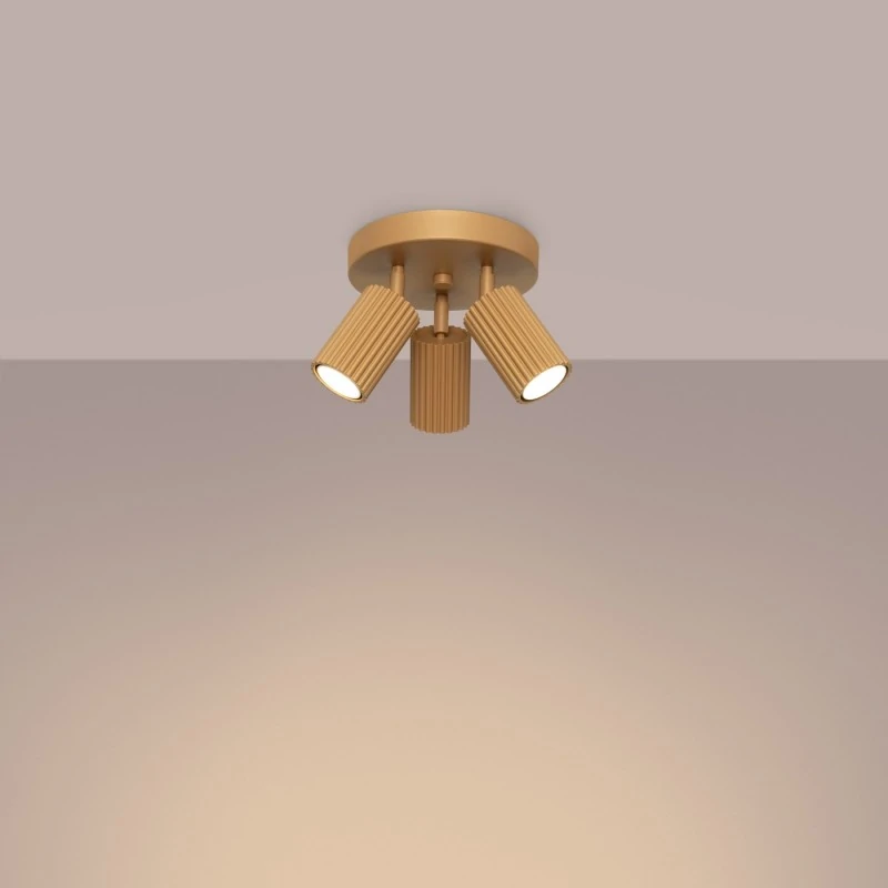Lampa sufitowa potrójna Plafon 3 karbowane klosze Złota KARBON SL.1563 SOLLUX