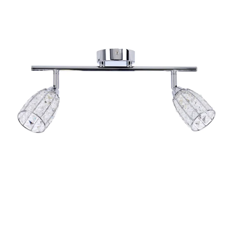 Nowoczesna listwa Shiba dwu płomienna wykonana z metalu w kolorze chrom, okrągły klosz metalowy efektownie zdobiony drobnymi kryształki . Wysoka transparentność kloszy zapewnia maksymalne wykorzystanie mocy źródła światła. Lampa wyposażona jest w dwie oprawki G9 umożliwia zastosowanie żarówki Led. Klosz lampy jest ruchomy umożliwia skierowanie i dopasowanie nachylenia źródła światła według własnych potrzeb. Zastosowanie do pomieszczeń w stylu nowoczesnym w pomieszczeniu salon, jadalnia, kuchnia, sypialnia, gabinetu czy przedpokoju. Lampę można zamontować na ścianie jak i suficie. Seria Shiba składa się z kinkietu oraz plafonu 3 punktowego.