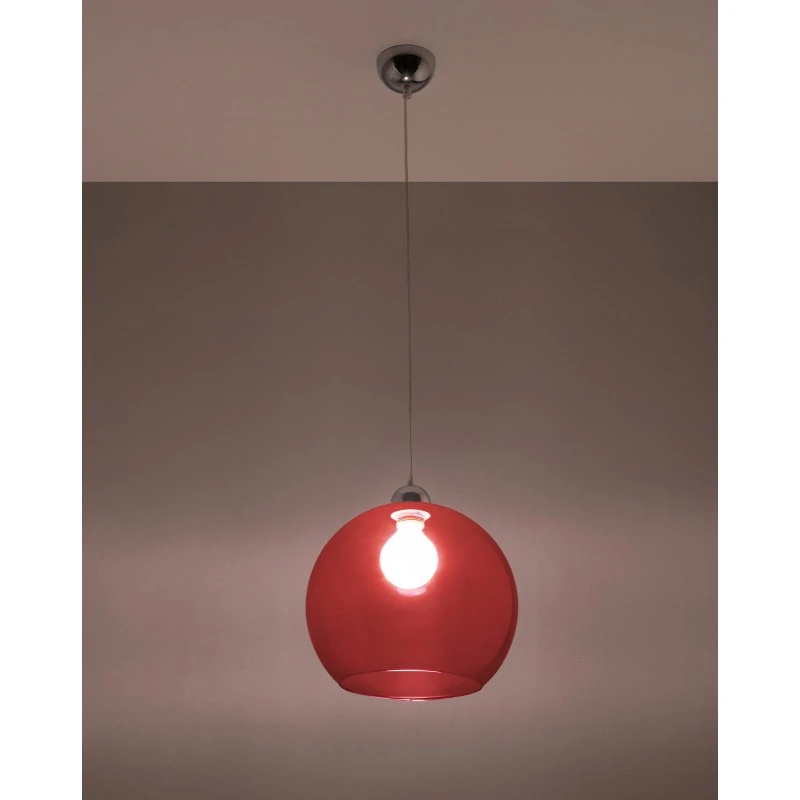 Szklana lampa wisząca Ball marki Sollux lighting w kolorze czerwonym to oryginalna dekoracja naszego wnętrza. Szklany klosz idealnie rozproszy nam światło i delikatnie je zabarwi, powstanie nam wówczas piękna poświata. Dzięki wymiennym źródłom światła o gwincie E27 dobierzemy odpowiednią do naszych oczekiwań moc i barwę światła. Pamiętajmy, że żarówka nie została dołączona do zestawu. Szklany klosz jest łatwy w utrzymaniu, wystarczy przetrzeć szmatką. Oświetlenie sufitowe dostępne jest w kilku kolorach, więc urozmaici niejedno wnętrze. Polski produkt objęty 5-letnią gwarancją producenta.