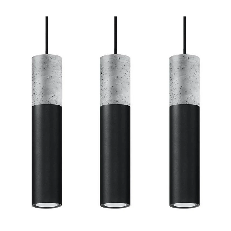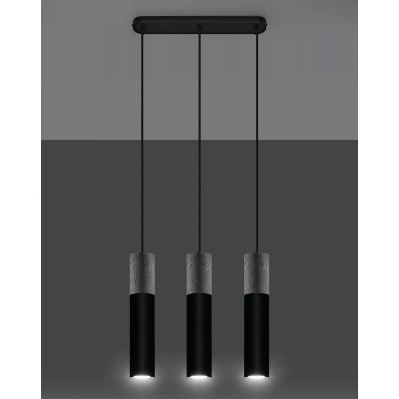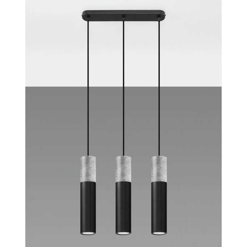 Lampa wisząca BORGIO 3 czarne tuby z betonową wstawką GU10 SL.0652 SOLLUX